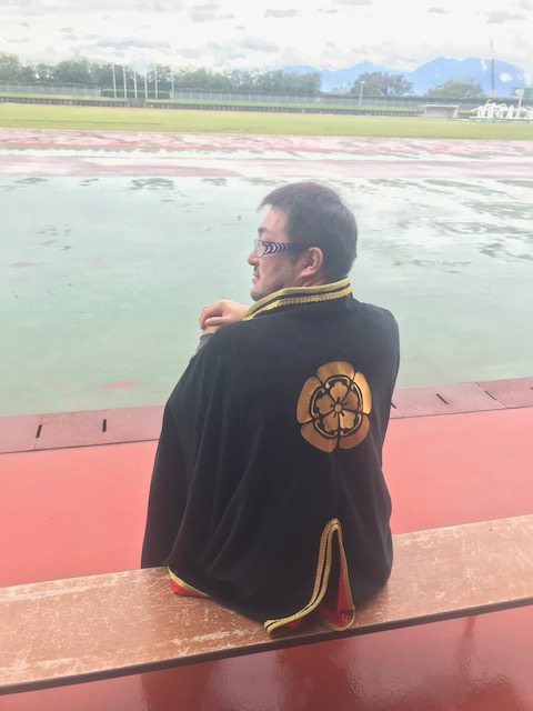 代表の衣装は、織田信長のマントです。実はカツラもあったのに、それは俺は被らへんとか拒否してました。
