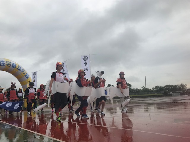 実は、法螺貝だけでなく、杖も実はちゃんと持ってるんですよ〜。この衣装は実は三日前に西岡に頼んでもらいました、「俺のカブトは?鎧は?」と突然言い出し、そんなのみんな知らん、聞いてない、えーどうする?と言いながら、代表は言うだけ言って、後は出張行きました。