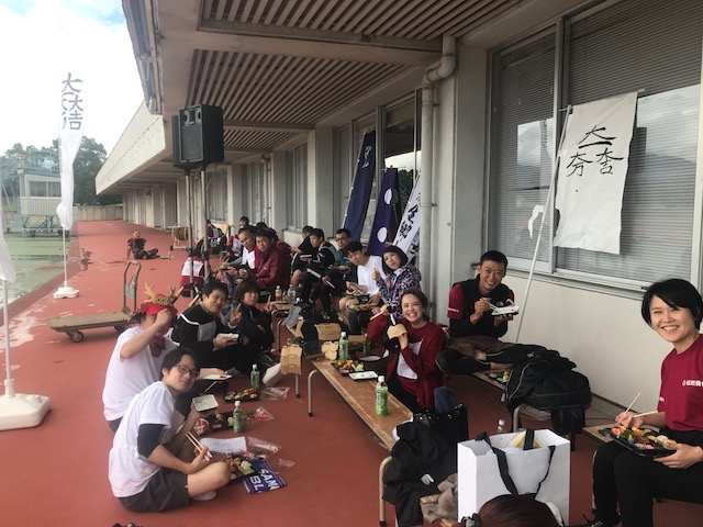 午前中の競技も終え、いよいよお弁当のタイムです。皆さん、お腹空いたよね?美味しいに笑顔のカメラ目線です。