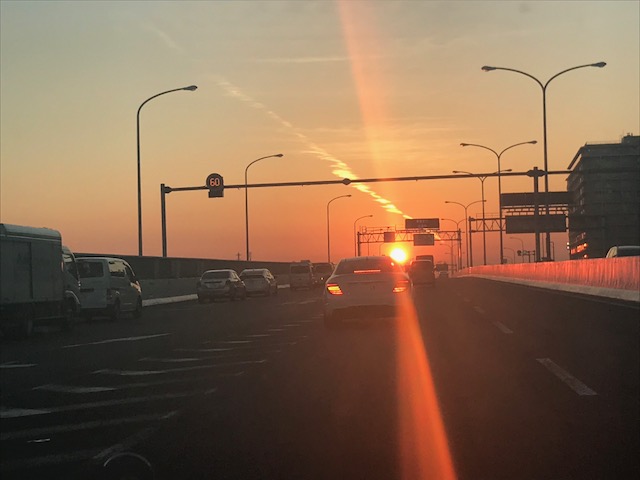 日が沈むその姿を真ん前に見ながら、車を走らせる!!なかなかセンチな気分になります。