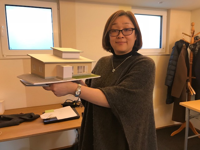模型研修の藤岡さんは、自身の作った模型を披露してくれました。伏石モデル、安城モデルに続いて、プラエネモデルです。モデルの模型に安定感さえみえますからね?