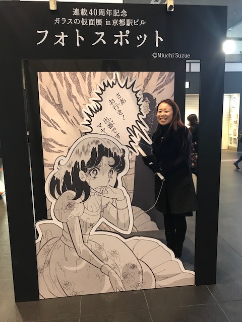今日は、京都のグランビアホテルに集合予定ですが、少し早く着いたので、ロビーをウロウロカフェコーナーを探していると何とガラスの仮面展をやってました。