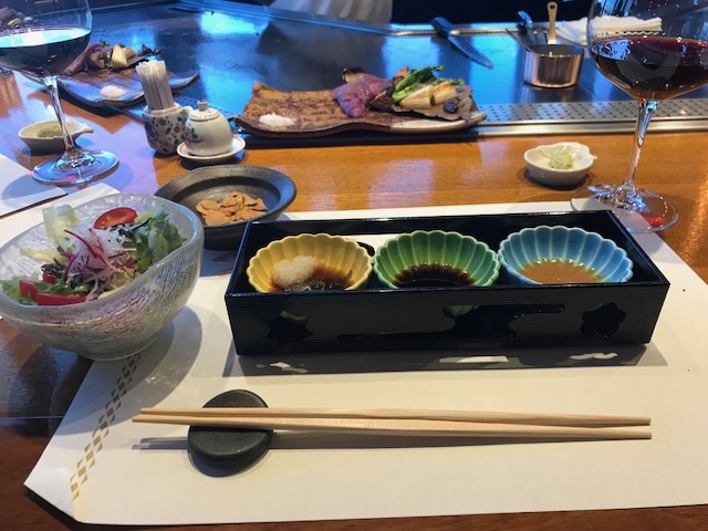 そんなご主人のスペシャルな鉄板焼きのメニューを私達のために特別に考えてくれたいわば、オリジナルメニューです。本日のシェフが二日前に総料理長からメニューもらって何これってびっくりしたそうです。それくらいのゴージャスなメニューです。