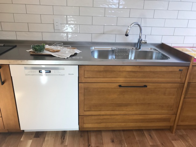 わあ〜キッチンです。食洗機かな?ドイツ製のミーレです。奥様がトントン・トントンと食材を切ってる音が聞こえそうです。