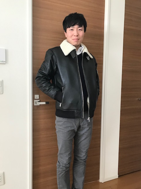 さて、サンタさんのプレゼントですがライダース革ジャンです。とても気持ち良さそうです。早速、お着替えしてくれました。どうですか?似合ってませんか?