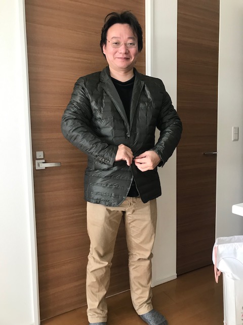 齋藤氏はこんなに痩せているのに寒がりなんです。なので、いつも凍えそうな顔で三重から名古屋に移動してきます。ダウンジャンバー着てますが、それでも寒そう!!