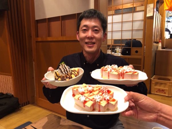 懇親会でてんこ盛りのバースデーケーキです笑笑いい顔してますねー!