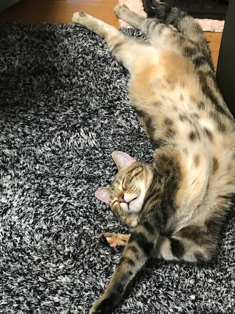 すると本人は、床暖房のポカポカのカーペットの上でゴロニャーンと寝てます。